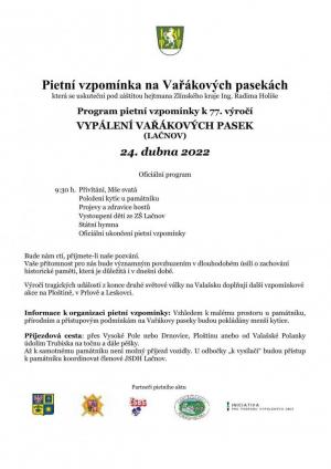 Pietní vzpomínka k 77. výročí vypálení Vařákových pasek.